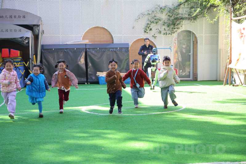 不仅如此,孩子们还尝试了操控机器人,看着机器人按照自己的指令做出动作,大家都兴奋极了。最热闹的当属赛跑环节,孩子们分组和机器人比赛,笑着追着机器人跑,整个操场充满了欢声笑语。