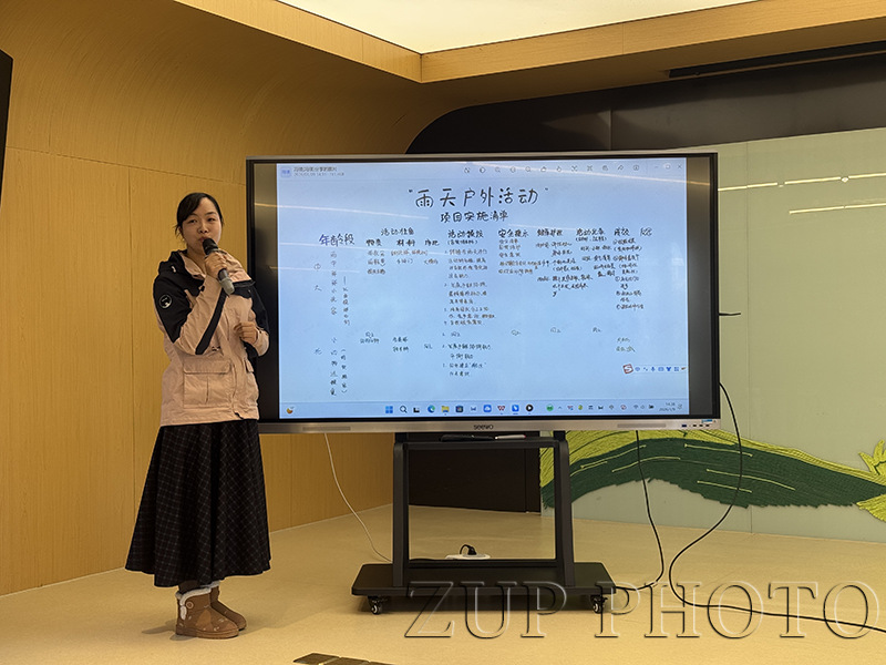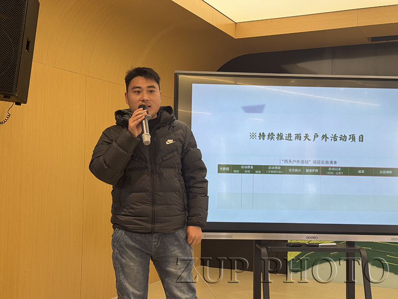 为深入落实《幼儿园保育教育质量评估指南》精神,高质量推进幼教服务中心“跑起来”计划,探索户外活动的创新路径,1月9日下午,浙大幼儿园西溪分园开展雨天户外活动项目实践推进会。活动基于亲自然园本课程文化背景,聚焦“雨天户外活动”的实施,由家长、教师、保健、保育员及后勤人员共同参与研讨。此次活动同步作为浙大幼教青干班课程文化交流阶段性展示,浙江大学幼儿园总园副园长兼实验园园长何晓勤、大华分园副园长方思斯,综合办陈德超、赵繁荣参与活动。